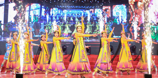 晚会共分为“舞动芳华”“逐梦青春”“展望未来”三个篇章。在精美华丽的舞美效果下,炫彩夺目的电子背景装饰下,迎着全场的欢呼声,一场视听盛宴正式开始。