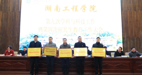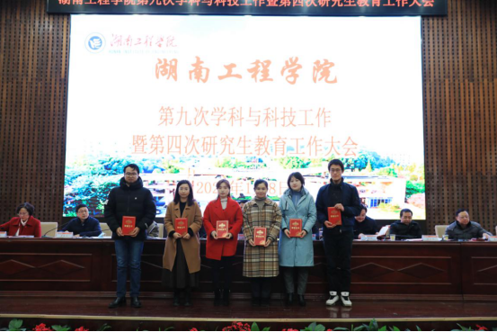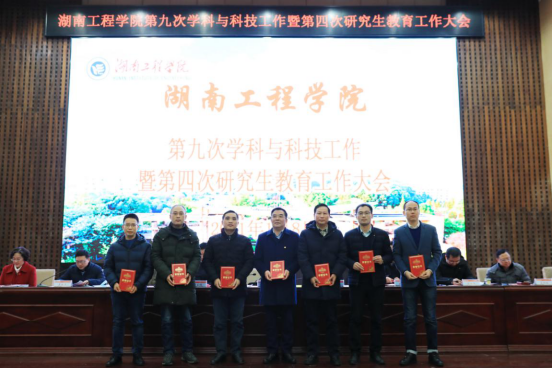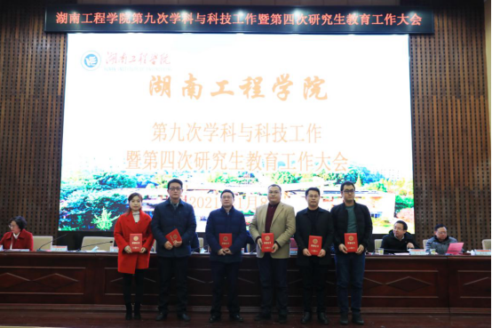 校长易兵作大会报告,党委书记陈岳堂作总结讲话,党委副书记宁立伟宣读“从教三十年”奉献奖文件,纪委书记俞贵邦宣读2019-2020年度科技工作先进集体与先进个人表彰文件,副校长李军林宣读2020年湖南省优秀硕士学位论文、校级优秀硕士学位论文指导教师表彰文件,副校长罗毅平主持大会。全体校领导,党委委员,中层干部正职,省、校级学科带头人,研究生导师,研究生任课教师,博士,教授,学位点秘书,研究生代表,获奖人员参加会议。