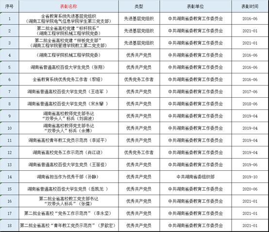加大了党内表彰和党内关怀力度。大力实施对标争先示范计划,树立了一批典型基层党组织和党员个人。5年间,共表彰优秀基层党组织6个,优秀党支部20个,优秀党务工作者和“双带头人”标兵10名,优秀党务工作示范岗和教工党员示范岗15名,优秀共产党员170名。加大了对困难党员、离退休党员和疫情防控艰苦一线党员的走访慰问力度,共走访慰问140人次,形成了党内激励、关怀、帮扶的长效机制。