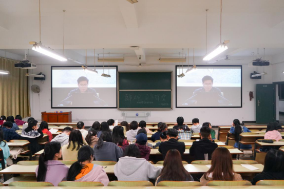 课堂设立主会场和分会场,主会场设在一报告厅,分会场分别设在主教学楼和南校区。全体学生通过现场聆听或网络同步直播的方式集中收看。易兵以“百年大党 百年辉煌——中国共产党的奋斗史”为题,给学生们上了一堂有情怀、有温度的思政课。