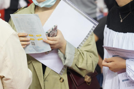 招聘会严格按照新冠疫情常态化防控要求举办。进入会场前,工作人员对前来招聘、应聘人员进行体温检测、查看健康码、行程码,参会人员全程佩戴口罩。