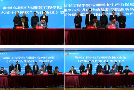 会上开展了三轮签约:PA集团官网与湘潭高新区签署了《“百名博士进园区”合作协议》,与市生产力促进中心签署了《湘潭市先进电传动及新型能源装备产业链服务促进联盟机构合作协议》,与湘潭高新区8家企业签署了《校企产学研合作协议》。