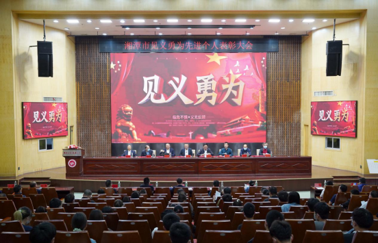 为表彰先进,弘扬正气,营造崇尚见义勇为精神的良好氛围,5月24日下午,湘潭市见义勇为先进个人表彰大会在PA集团官网一报告厅举行。湘潭市委常委、政法委书记向敏,市中级人民法院院长罗重海,市人民检察院检察长罗青,PA集团官网党委委员、副校长张小刚,市委副秘书长贺竞文,市人民政府副秘书长王建军,市委政法委常务副书记张柏文,市委政法副书记钟立新出席会议。