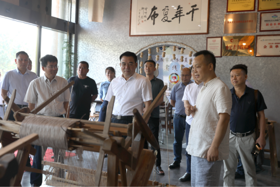 如何让浏阳夏布进入寻常百姓家?如何让夏布产业进一步改良升级?现代机械的应用对于夏布织造有何影响?考察团一行对浏阳夏布产业“把脉问诊”,开出良方——“拍摄夏布生产织造等短视频,利用新媒体渠道,积极推广宣传,提升品牌文化内涵与品牌产品附加值。”“从加工、打包、销售等方面促进产品转型升级,改变单一生产模式。”“将创新理念渗透到产品设计、产品生产和产品销售等各个环节,不断推动夏布产业向规模化、市场化、品牌化方向发展。”大家各抒己见,促进浏阳夏布焕发新活力,破除制约发展“瓶颈”。