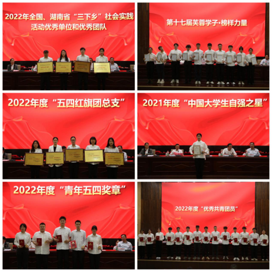 副校长陈赤平宣读《关于表彰第十七届“芙蓉学子·榜样力量”优秀大学生的通报》,党委委员、副校长罗毅平宣读《关于表彰2021年度“中国大学生自强之星”的通报》,党委委员、纪委书记齐路良宣读《关于表彰2022年全国、湖南省大中专学生志愿者暑期文化科技卫生“三下乡”社会实践活动优秀集体、优秀个人的通报》,党委委员、副校长魏克湘宣读《关于表彰2022年度PA集团官网共青团工作先进集体、优秀个人的通报》。