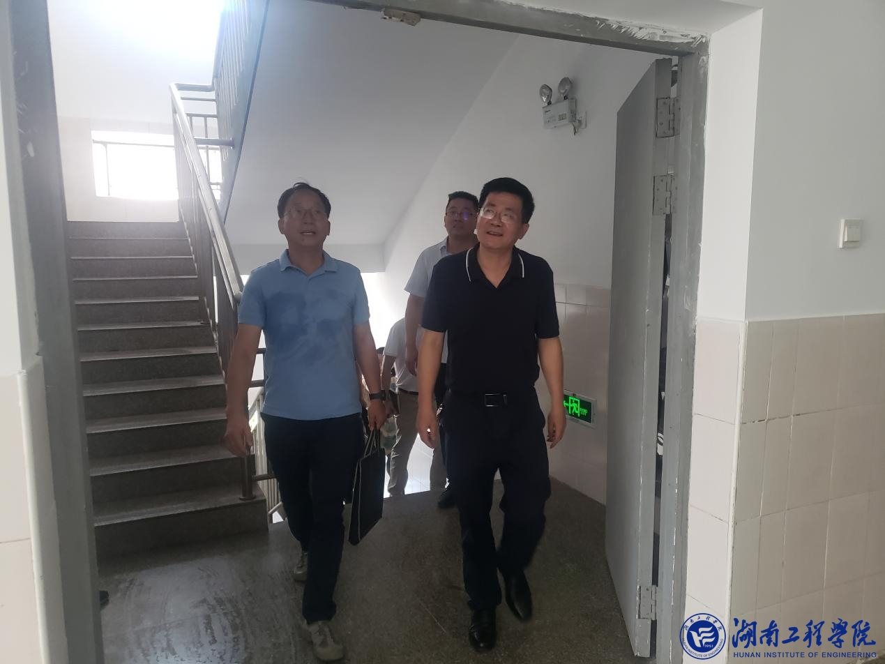 为推动学习贯彻习近平新时代中国特色社会主义思想主题教育走深走实,大兴调查研究,7月11日,党委副书记、校长易兵带队走基层、找问题、想办法、促发展,一行人来到学生宿舍,检查各项工作,坚决筑牢校园安全稳定防线。