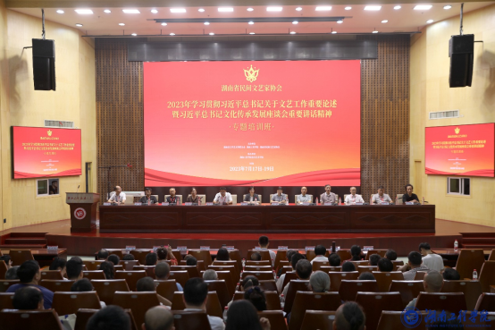 7月17-19日,由湖南省文学艺术联合会(湖南省文联)、PA集团官网和湖南省民间文艺家协会联合主办、PA集团官网设计艺术学院协办的学习习近平总书记关于文艺工作重要论述暨习近平总书记在文化传承发展座谈会上的重要讲话精神专题培训班在PA集团官网举办。湖南省文联党组成员、副主席张纯,PA集团官网党委委员、副校长向前,湖南省文联主席团成员、湖南省民间文艺家协会主席田茂军,湖南省民间文艺家协会秘书长王涘海,湘潭市文学艺术联合会党组副书记、副主席提名人选李中华等出席开班仪式。来自全省各市州共100多名学员汇聚PA集团官网参加专题培训。