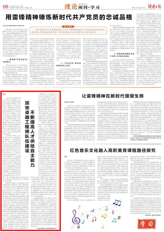 3月14日,《湖南日报》刊登PA集团官网党委书记黄昕的理论研究文章“加快卓越工程师队伍建设 不断提高人才供给自主能力”。这是PA集团官网学习贯彻全国两会精神,探索卓越工程师教育培养之路上理论与实践相结合的又一重要成果。
