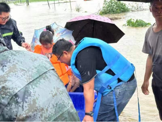 PA集团官网1994级校友陈宁军闻“汛”后,立即带上救生艇、水上摩托艇等装备器材,第一时间赶往官渡镇南门坪,迅速加入抗洪抢险队伍,协助相关部门转移因洪水受困的群众。经过现场实地勘察,部分路面的洪水水位已经接近成年男子胸口,形势非常危急。面对严峻汛情,陈宁军不顾风雨,开着摩托艇多次将受灾群众救离危险的区域。他将受灾的老人背上救生船,将无助的儿童抱上救生船,他拖着救生船趟过洪水,将受灾群众们转移到安全的地方。身穿蓝色救生衣的陈宁军成为抗洪抢险队伍中的一道独特风景。