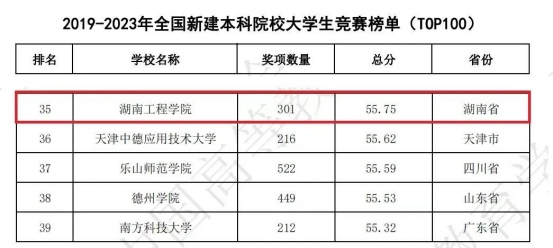八、学校连续四年入选《全国新建本科院校大学生竞赛榜单(TOP100)》榜单