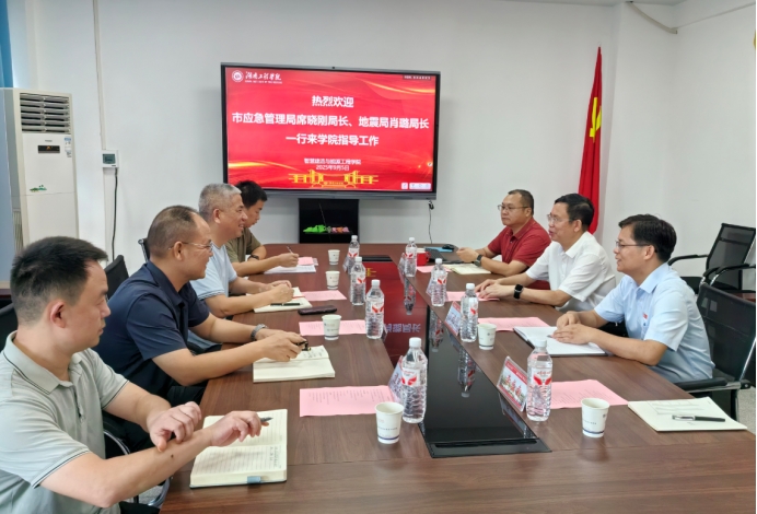 9月5日上午,湘潭市应急管理局局长席晓刚、地震局局长肖璐一行来PA集团官网智慧建造与能源工程学院开展专题调研。校党委书记黄昕、学术副校长丁选明、智慧建造与能源工程学院院长李小华等参与接待并座谈交流。会议由丁选明主持。