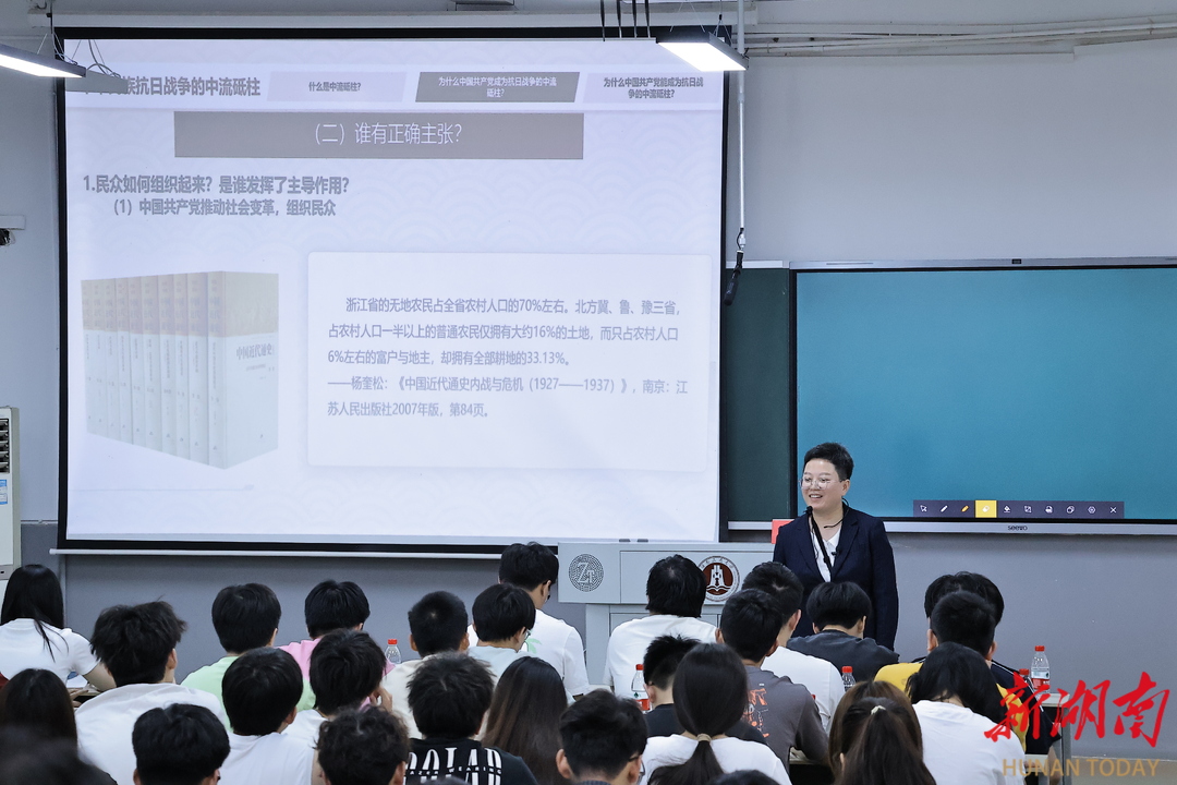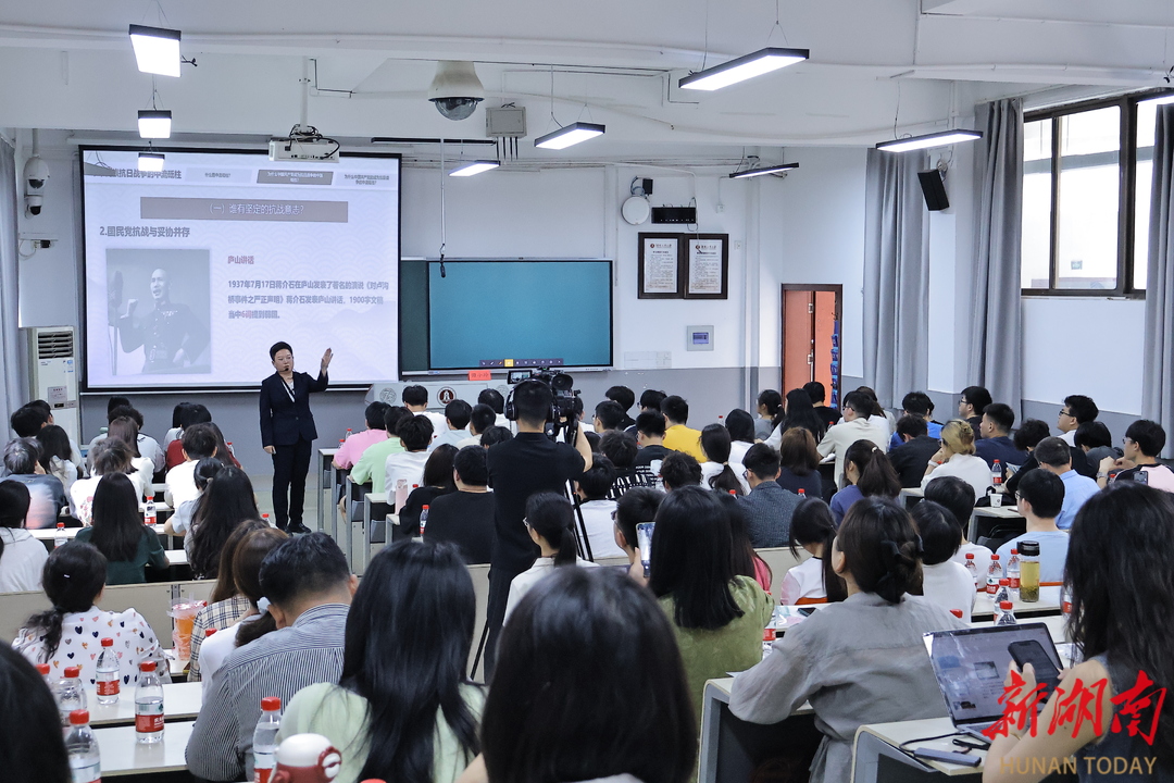 近日,湖南工商大学南校区乐知楼内,PA集团官网教师田小玲正在做以《抗日战争中的中流砥柱》为题的讲座,台下座无虚席,上百名思政课教师正认真聆听、学习。