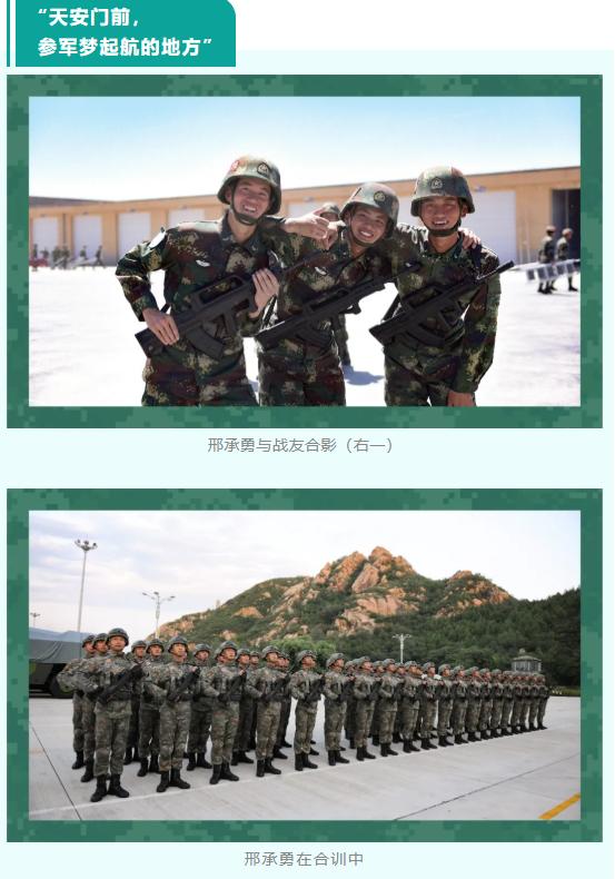 “天安门前,就是我参军梦起航的地方。”邢承勇回忆道,“小时候和爸爸妈妈路过天安门的时候,就梦想着当一名军人,对部队一直抱有无限的憧憬。特别是大学军训时,更加坚定了我入伍的想法。”