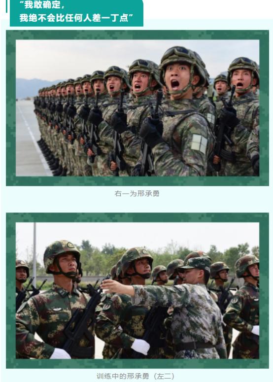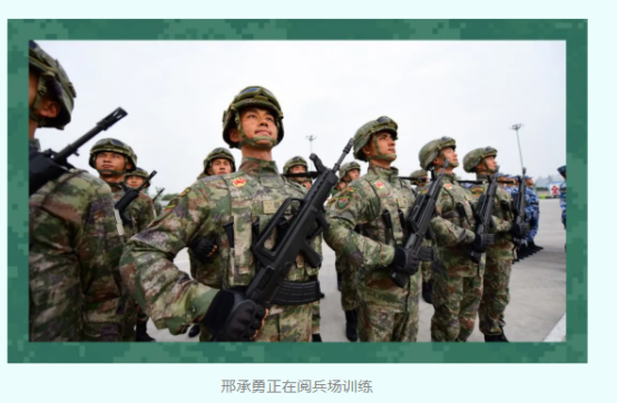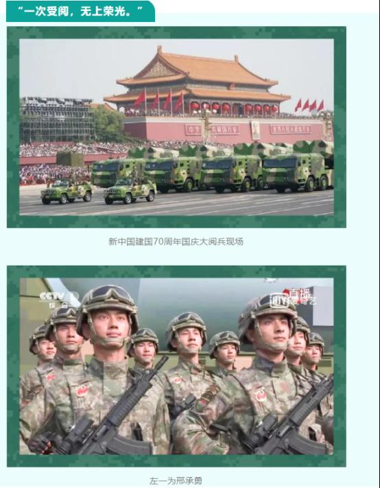 在2018年12月,正在备考军校的邢承勇得知单位有阅兵任务时陷入了纠结。是继续备考还是参加阅兵?思量再三后,他毅然选择参阅。邢承勇说:“考军校是我的目标,很长一段时间我都在积极备考。但受阅是让我感觉终生光荣的事,如能够在军旅生涯最后阶段享受这一荣光,此生无憾。”