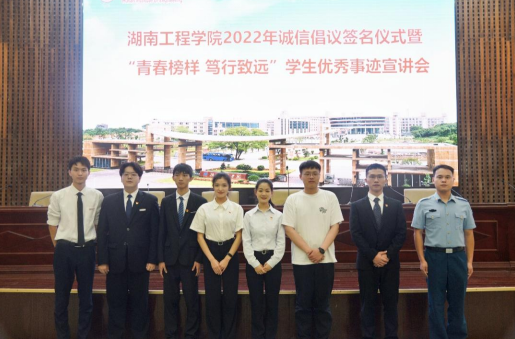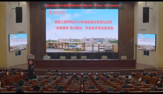 言而有信、诚者自成,伴随着庄严的国歌响起,本次诚信倡议签名仪式正式启动,学生工作处副处长唐星星作《诚以立身,信以致远》报告。她讲到讲诚信是中华民族的传统美德,讲诚信是天下行为准则的关键,做人做事必须坚守的道德底线,唯有以诚待人、以信立身,才能树立起信誉获得更多的认可与机遇。工程管理2001班童佳乐宣读了《诚信倡议书》,向广大师生倡议,树立诚实守信观念,传承诚实守信精神,培育诚实守信意识。随后由环境设计1904班余泽星领誓,参会师生共同进行了诚信宣誓,并在签名板上郑重签名承诺。