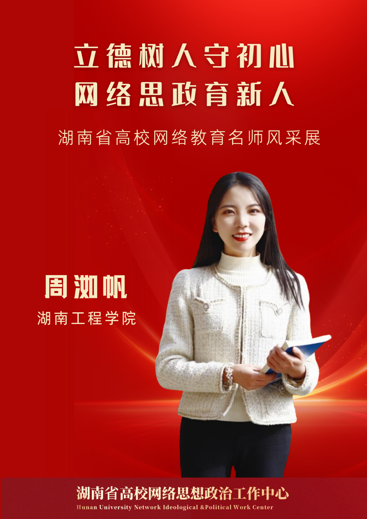 立德树人守初心,网络思政育新人!为进一步讲好网络育人故事,彰显网络思政魅力,湖南省高校网络思想政治工作中心特推出湖南省高校网络教育名师风采展。分享网络思政经验、展示网络育人成效,唱响湖湘网络思政最强音!