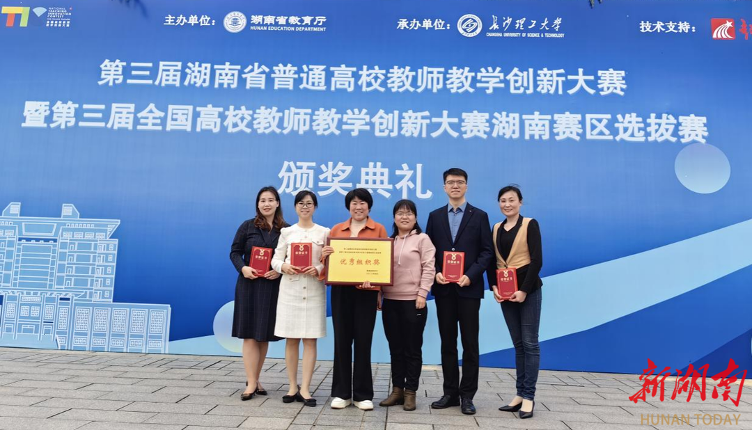 该校机械工程学院向锋教师团队荣获课程思政讲师组一等奖,建筑工程学院王平教师团队荣获新工科讲师组一等奖,体育教学部唐炼教师团队荣获基础课程副高组二等奖,管理学院胡湘兰教师团队和刘湘宁教师团队分别荣获新文科讲师组二等奖和三等奖。同时,该校获优秀组织奖,实现了湖南省四大教学竞赛优秀组织奖大满贯,取得了教师教学竞赛上的历史性突破。