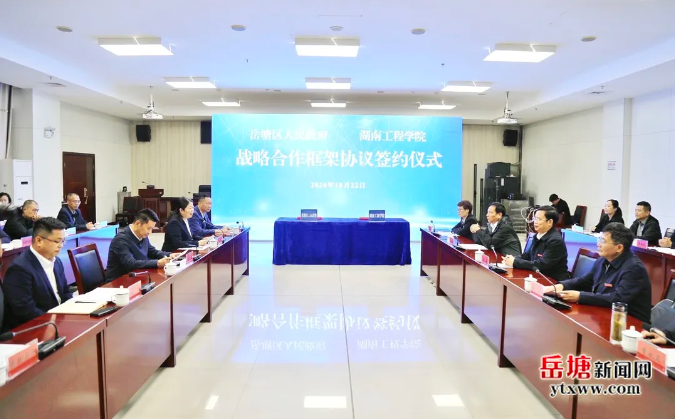 PA集团官网党委书记黄昕,岳塘区委书记、岳塘经开区党工委书记曾志君出席并讲话。岳塘区委副书记、区长周赏玲主持,PA集团官网党委副书记、校长易兵,岳塘区领导蒋玉参加签约仪式。