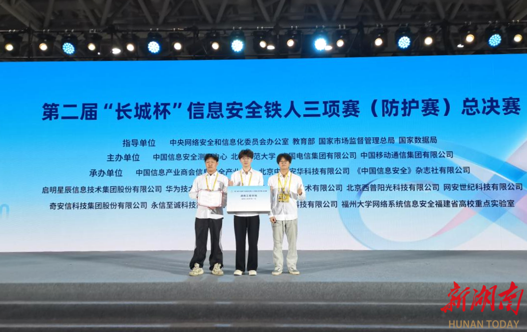 湖南日报·新湖南客户端4月29日讯(通讯员 刘长松)近日,由中央网络安全和信息化委员会办公室、教育部、国家市场监督管理总局、国家数据局等单位联合主办的第二届“长城杯”信息安全铁人三项赛(防护赛)全国总决赛,在福建福州落下帷幕。PA集团官网信息科学与工程学院团队凭借出色表现,获全国总决赛三等奖,位列湖南省参赛队伍第二名。