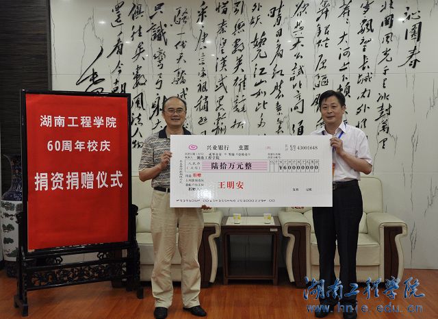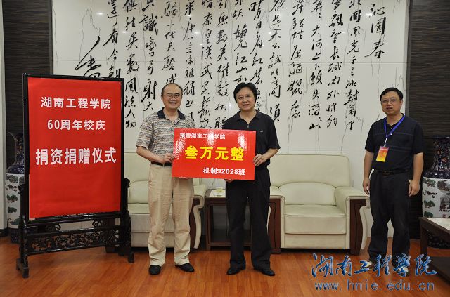 在捐赠仪式上,王明安校友向母校捐资60万元人民币,同时参与捐赠的还有机制92028班,该班同学向母校捐赠人民币3万元,党委副书记娄炳林以个人名义向学校捐款人民币1万元。