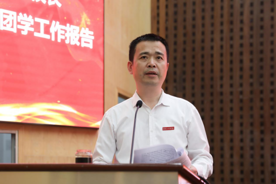 陈岳堂对2021年度PA集团官网团学工作取得的成绩给予了充分肯定,向受到表彰的先进集体和优秀个人表示祝贺。陈岳堂指出,学校始终坚持立德树人根本任务,加快构建大学生思想政治教育体系,努力培养担当民族复兴大任的时代新人,培养德智体美劳全面发展的社会主义建设者和接班人。他表示,作为新时代青年教师,要树立崇高职业理想、提升业务工作能力、激发责任使命担当,坚持育人初心,做好学生良师益友。他对青年学生提出了坚持砥砺奋斗、牢固树立理想信念的殷切期望:一是圆梦新时代,要坚定信念、不忘初心;二是圆梦新时代,要永久奋斗、保持恒心;三是圆梦新时代,要练就本领、铸就匠心;四是圆梦新时代,要开拓创新、树立信心。陈岳堂希望,全体青年师生接续奋斗,勇毅前行,谱写出时代新人的壮丽新篇章。