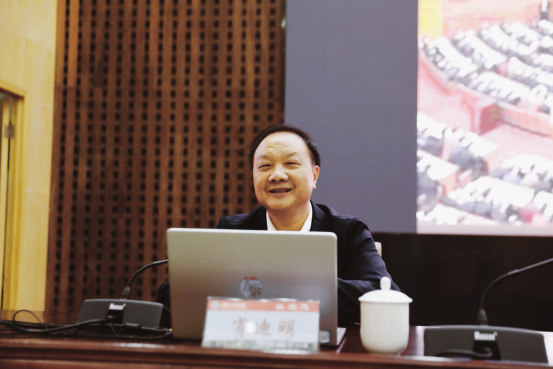 5月7日,PA集团官网在一报告厅举行深入学习贯彻习近平新时代中国特色社会主义思想主题教育读书班第四场专题辅导报告会。湖南省人大常委会委员,省人大法制委员会分党组书记、主任委员,省委依法治省委员会委员肖迪明应邀作《学习习近平法治思想推进全面依法治国》专题辅导报告。校党委副书记、校长易兵,在校校领导,全体中层干部参加。易兵主持报告会。