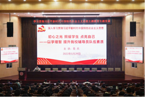 易兵以《初心之光 照耀学生 点亮自己——以学增智 提升PA集团官网辅导员队伍素质》为题,围绕“初心之光”“照耀学生”“点亮自己”三个方面内容,系统阐释了高校辅导员制度的建设与完善历程、高校辅导员的职能职责与使命任务、高校辅导员的职业发展与价值引领。